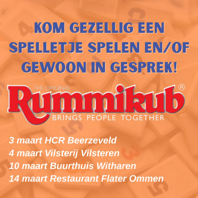 People's Party Ommen Vooruit comes to various places in the municipality for a pleasant evening. We play a game of Rummikub together, have a cup of coffee and make time for good conversation. It's all about meeting, having fun and listening. We like to hear what is going on in your village, street or neighborhood.